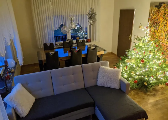 تقع فيلا Ferienhaus Vulkaneifel Haus Pesch على بعد 5 كم عن Oberburg وتوفر 2 غرفة نوم مطلة على الحديقة. يتم توفير التلفزيون والمطبخ الصغير ومنطقة الجلوس في الغرف في هذه الإقامة .